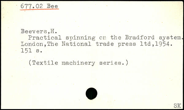 Practical spinning on the Bradford system, London,The National trade press ltd, 1954.