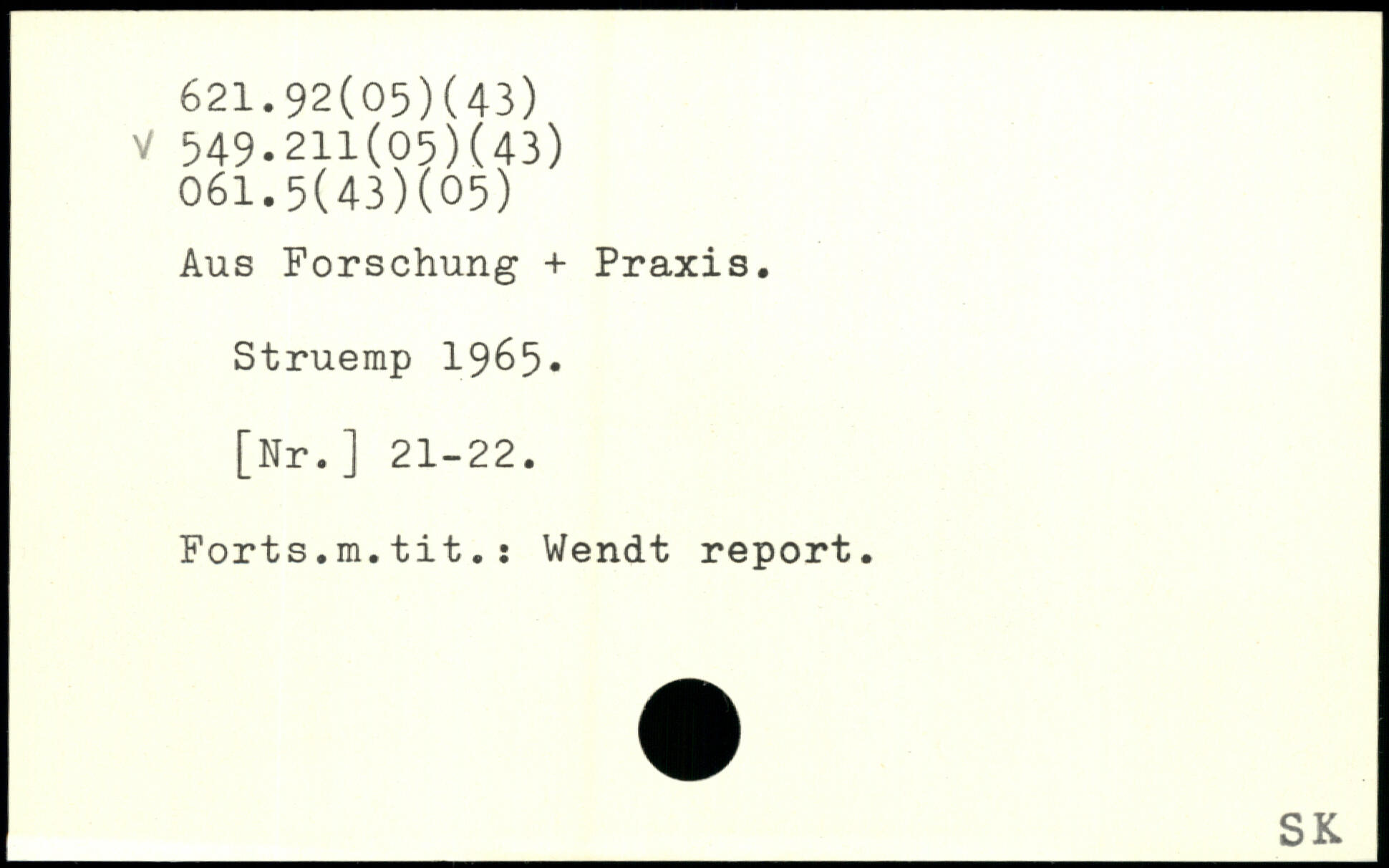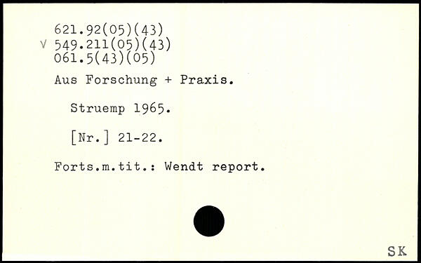Aus Forschung + Praxis. Struemp 19 6 5 -[Nr.] 21-22. Forts.m.tit.; Wendt report. _SK