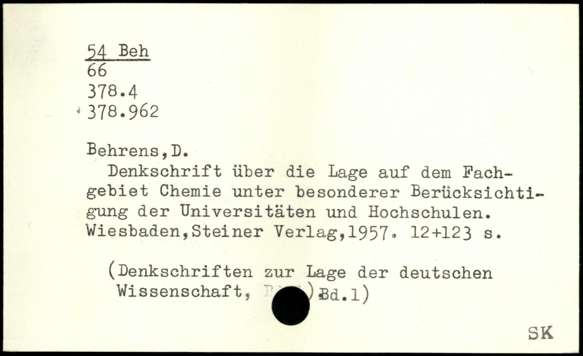 Denkschrift über die Lage auf dem Fachgebiet Chemie unter besonderer Berücksichtigung der Universitäten und Hochschulen.