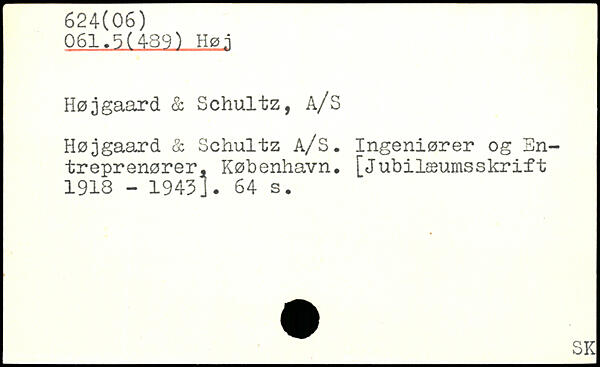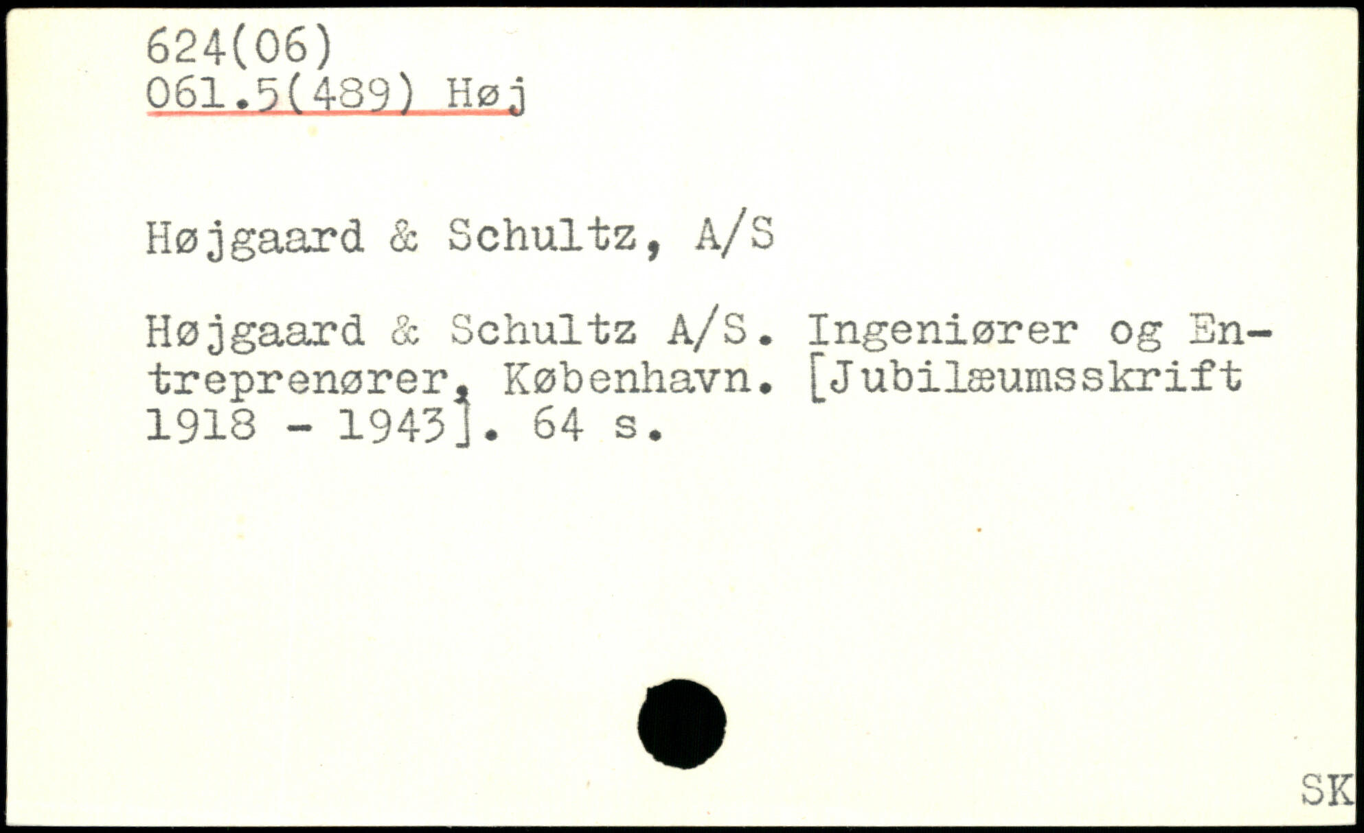 Hø jgaard & Schultz A/S. Ingeniører og Entreprenører, København. [Jubilæumsskrift 1918 - 1943J.