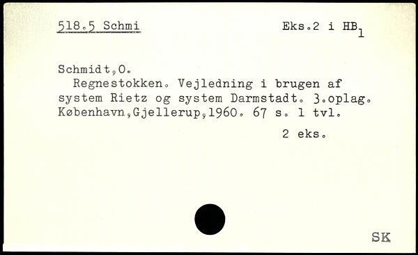 Regne stokken o Vejledning i brugen af system Rietz og system Darmstadt, 3,oplag, København9Gjellerupj1960