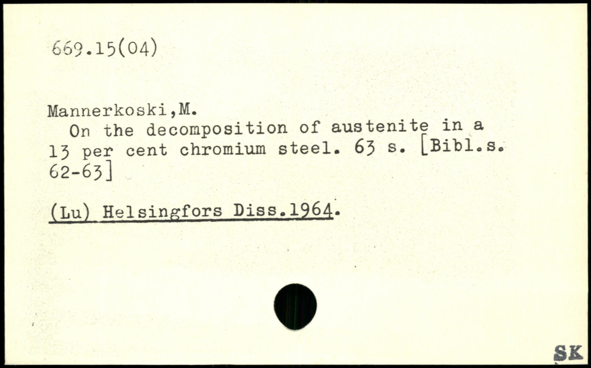 On the decomposition of austenite in a 13 pen cent chromium steel.