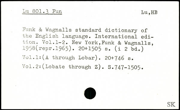 Funk & Wagnalls standard dictionary of the English language. International edition.