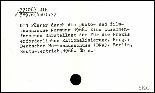 DIN Führer durch die photo- und film-technische Normung 1966. Eine zusammen— fassende Darstellung der für die Praxis erforderlichen Rationalisierung. Hrsg.: Deutscher Normenausschuss (DNA).