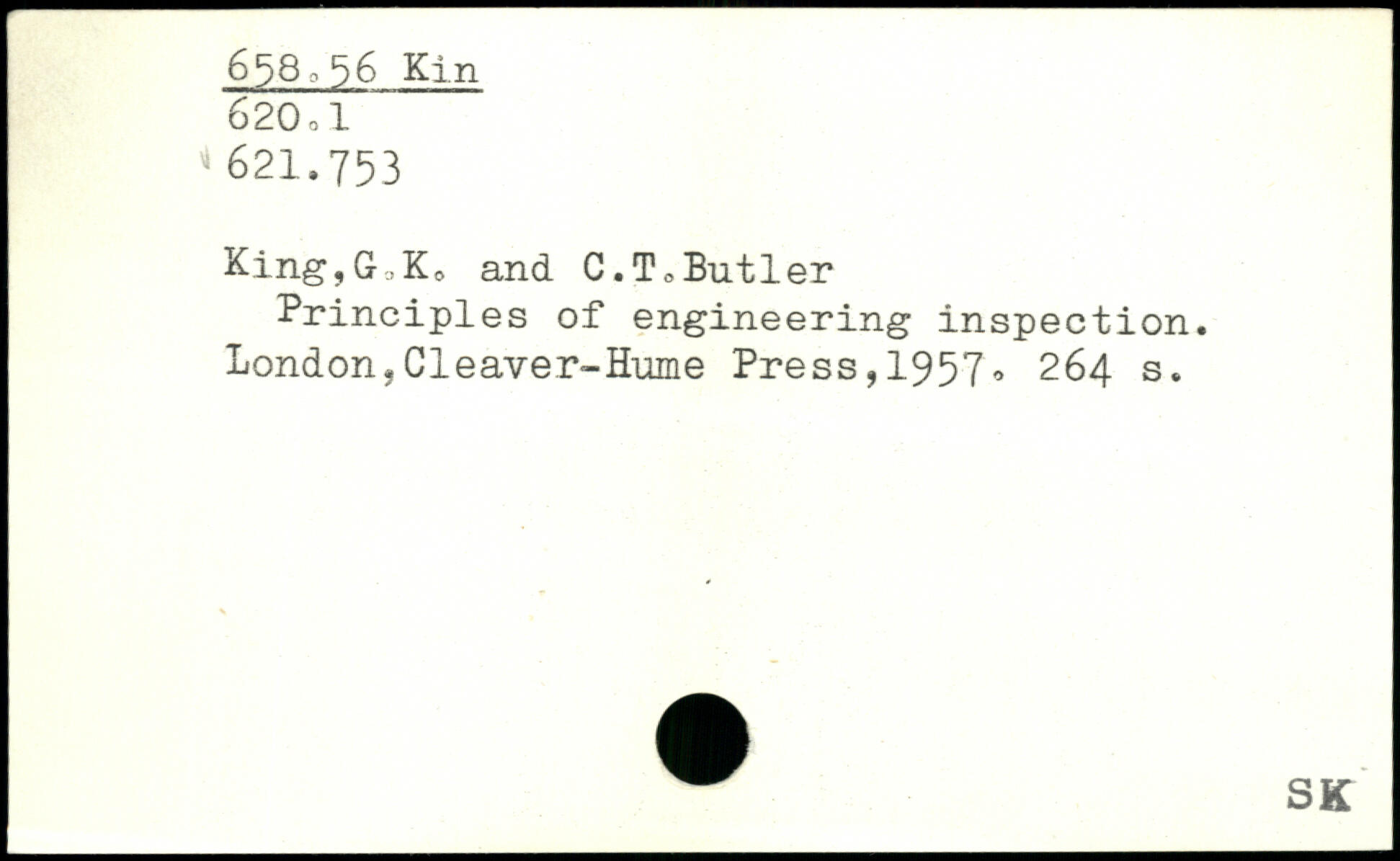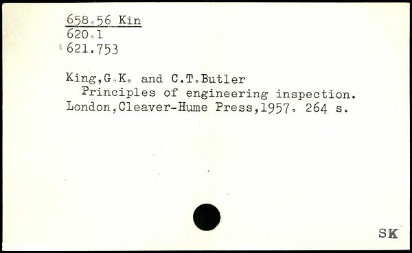 King,G,K, and C.T,Butler Principles of engineering inspection.