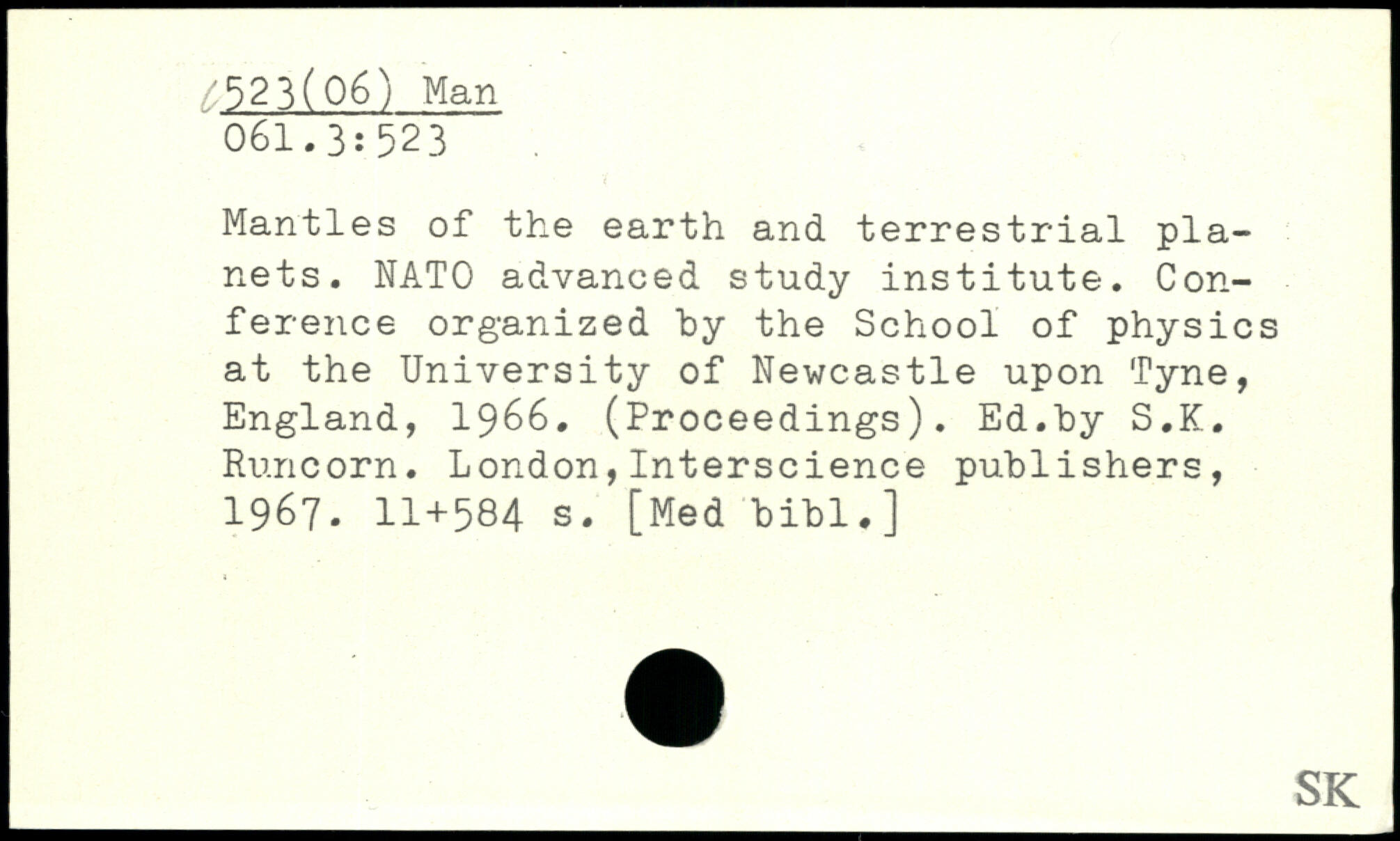 Mantles of the earth and terrestrial pla-nets. NATO advanced study institute. Conference organized by the School of physics at the University of