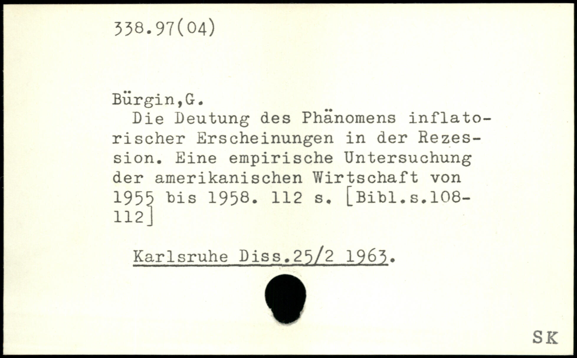 Die Deutung des Phänomens inflatorischer Erscheinungen in der Rezession. Eine empirische Untersuchung der amerikanischen Wirtschaft von 1955 bis 1958.