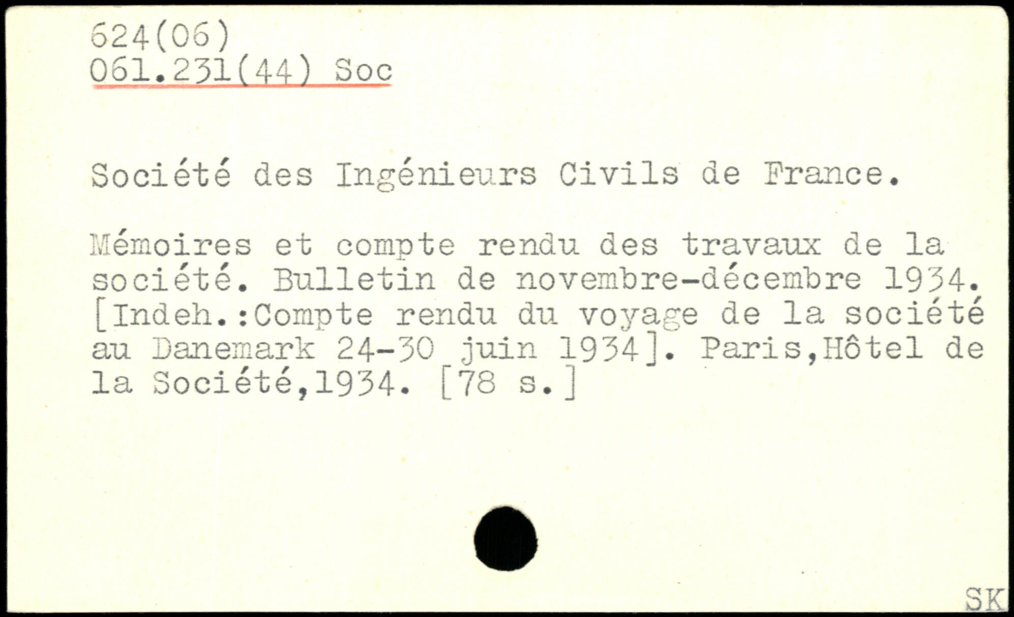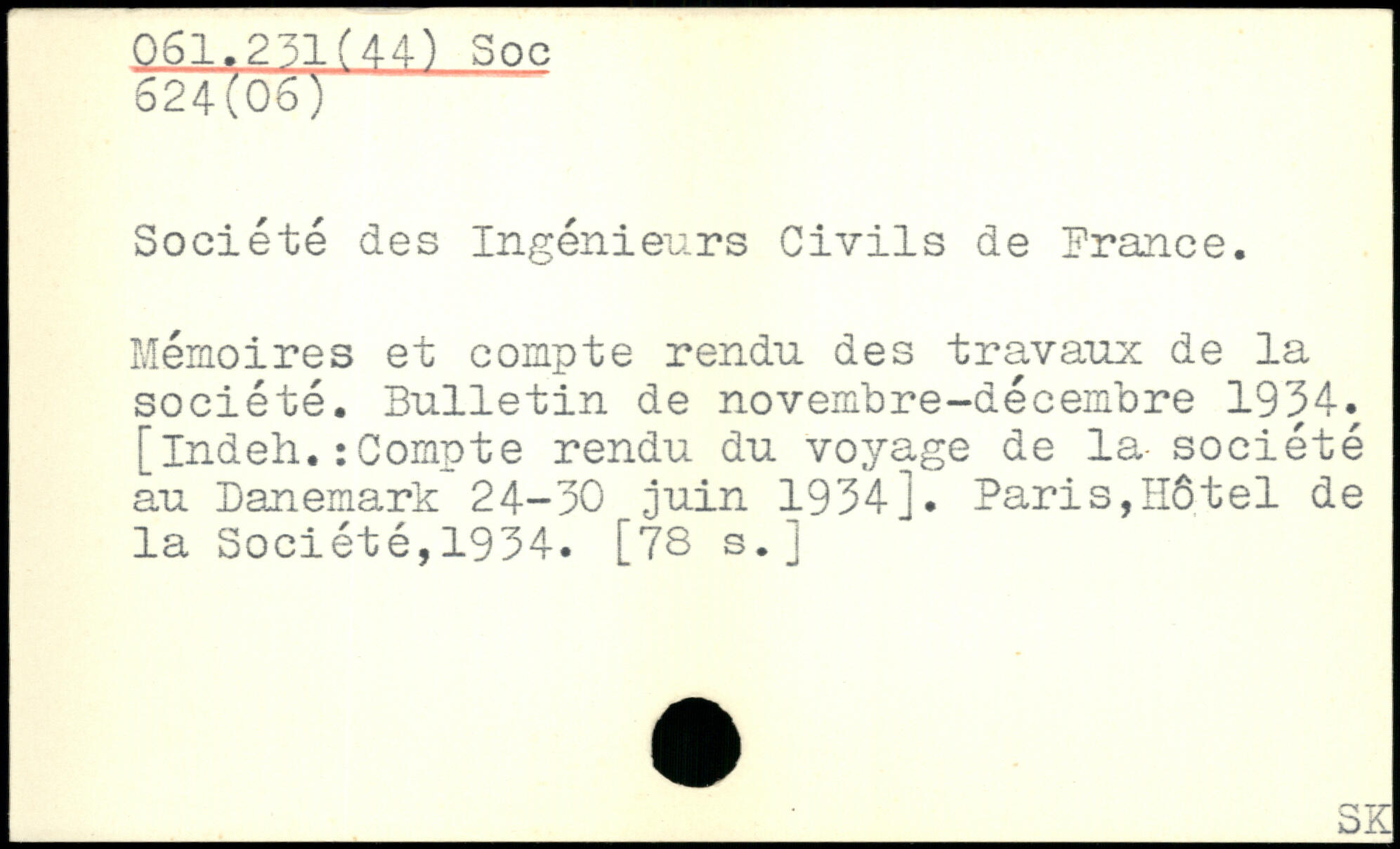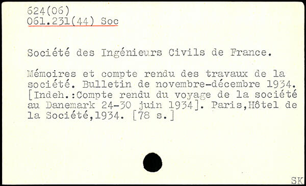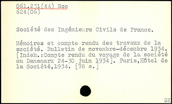 Société des Ingénieurs Civils de France. Mémoires et compte rendu des travaux de la société. Bulletin de novembre-décembre 1934. [indeh.: Compte rendu du voyage de la- société au Danemark 24-30 juin 1934]. Paris,Hôtel de la Société,1934. [
