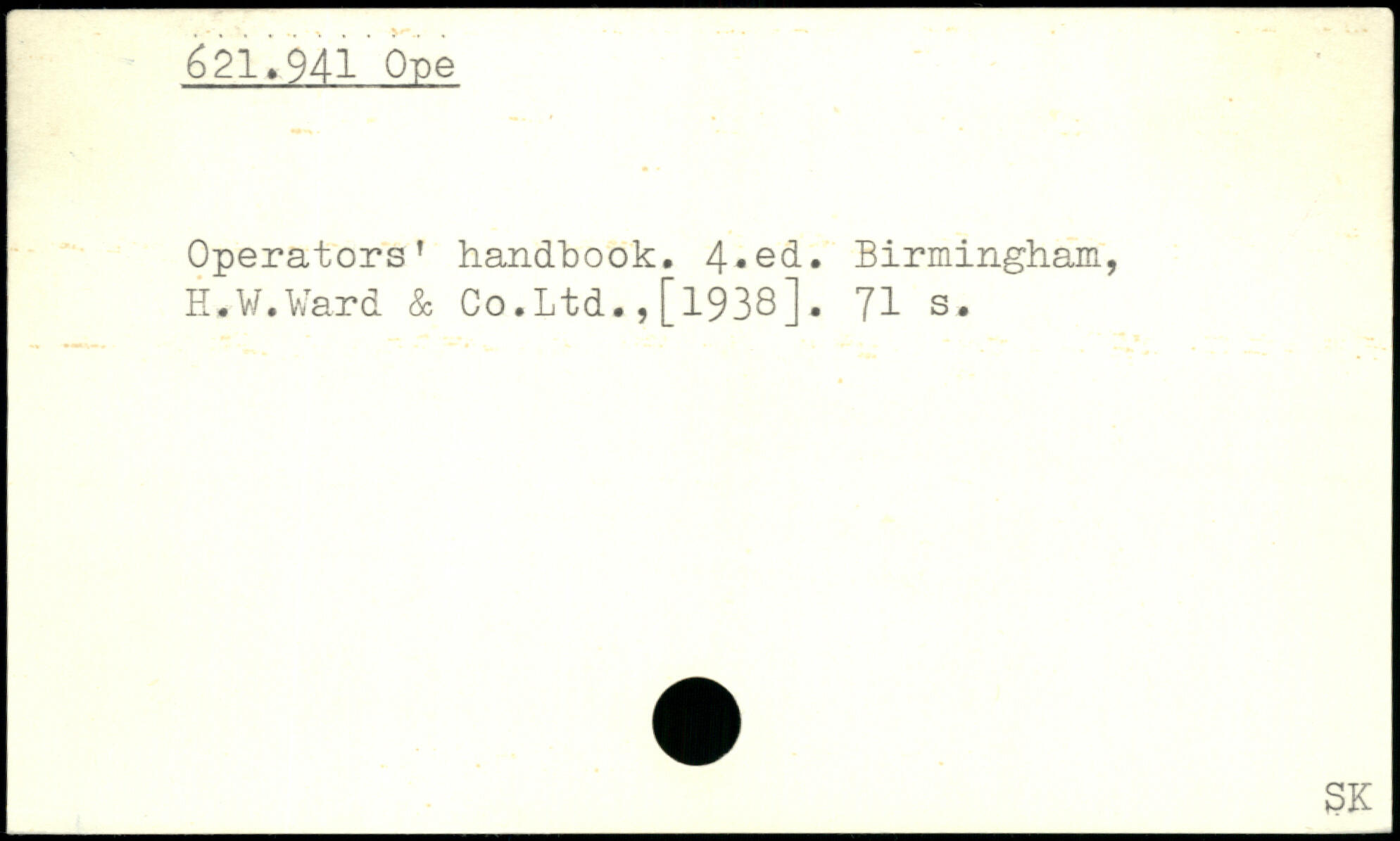 Operators’ handbook. Birmingham, H.V/.Vard & Co.Ltd.,[1938].