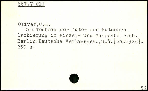 Die Technik der Auto- und Kutschenlackierung im Einzel- und Massenbetrieb. Berlin,Deutsche Verlagsges.,u.ä.[ca.1928].