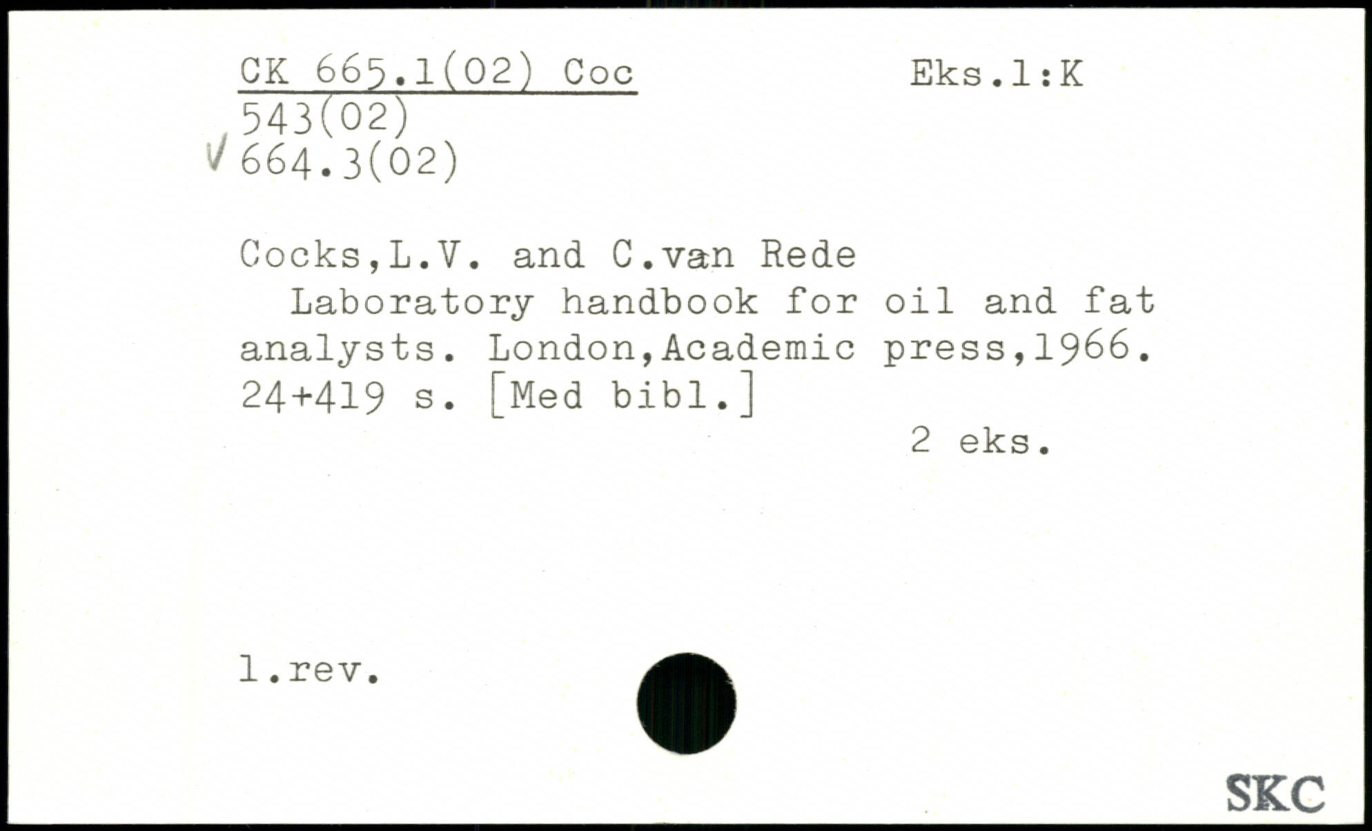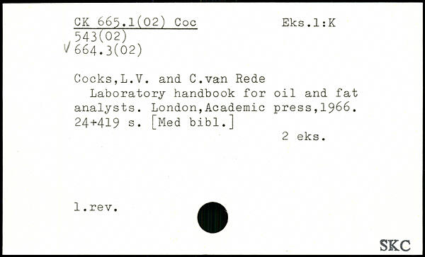 Cocks,L.V. and C.van Rede Laboratory handbook for oil and fat analysts.