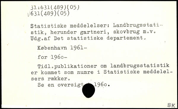 Statistiske meddelelsers Landbrugsstati-stiks herunder gartneri, skovbrug m0Vo Udg0af Det statistiske departement
