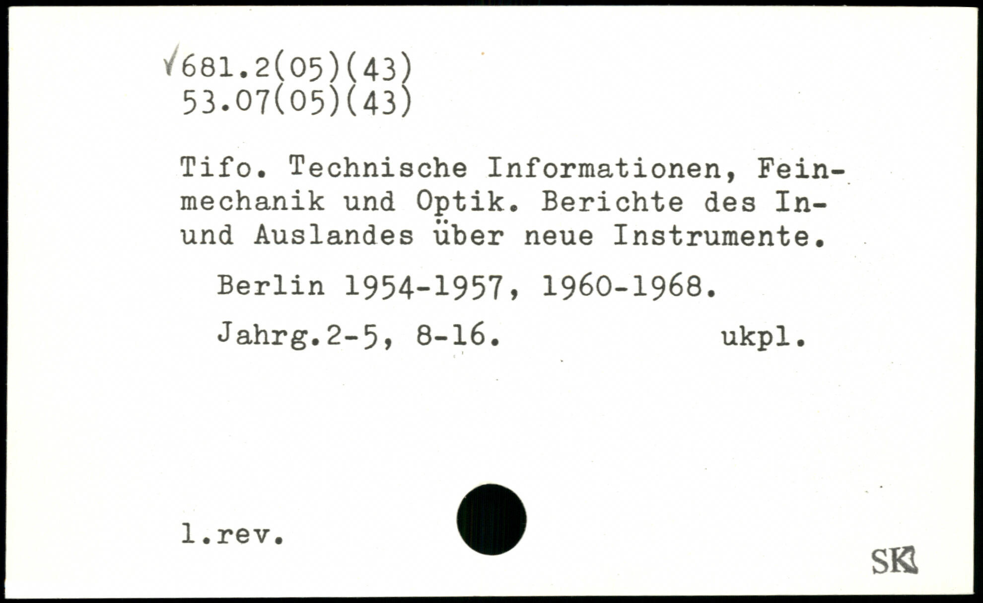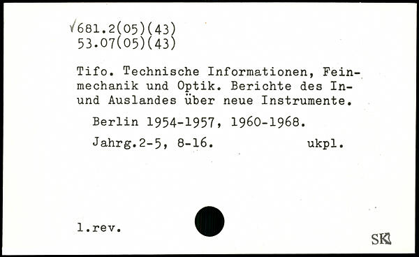 Tifo. Technische Informationen, Feinmechanik und Optik. Berichte des In-und Auslandes über neue Instrumente.