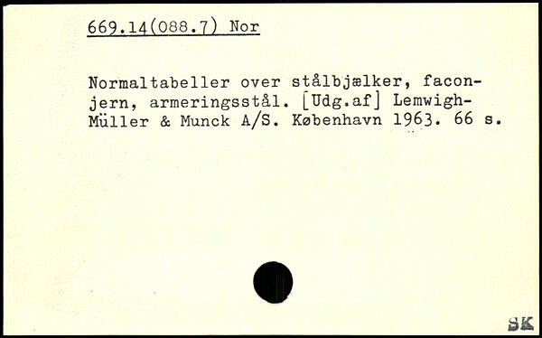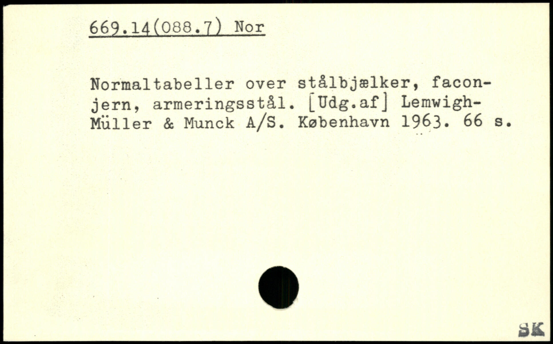 Normaltabeller over stålbjælker, faconjern, armeringsstål. [Udg.afj Lemwigh-Muller & Munck A/S.
