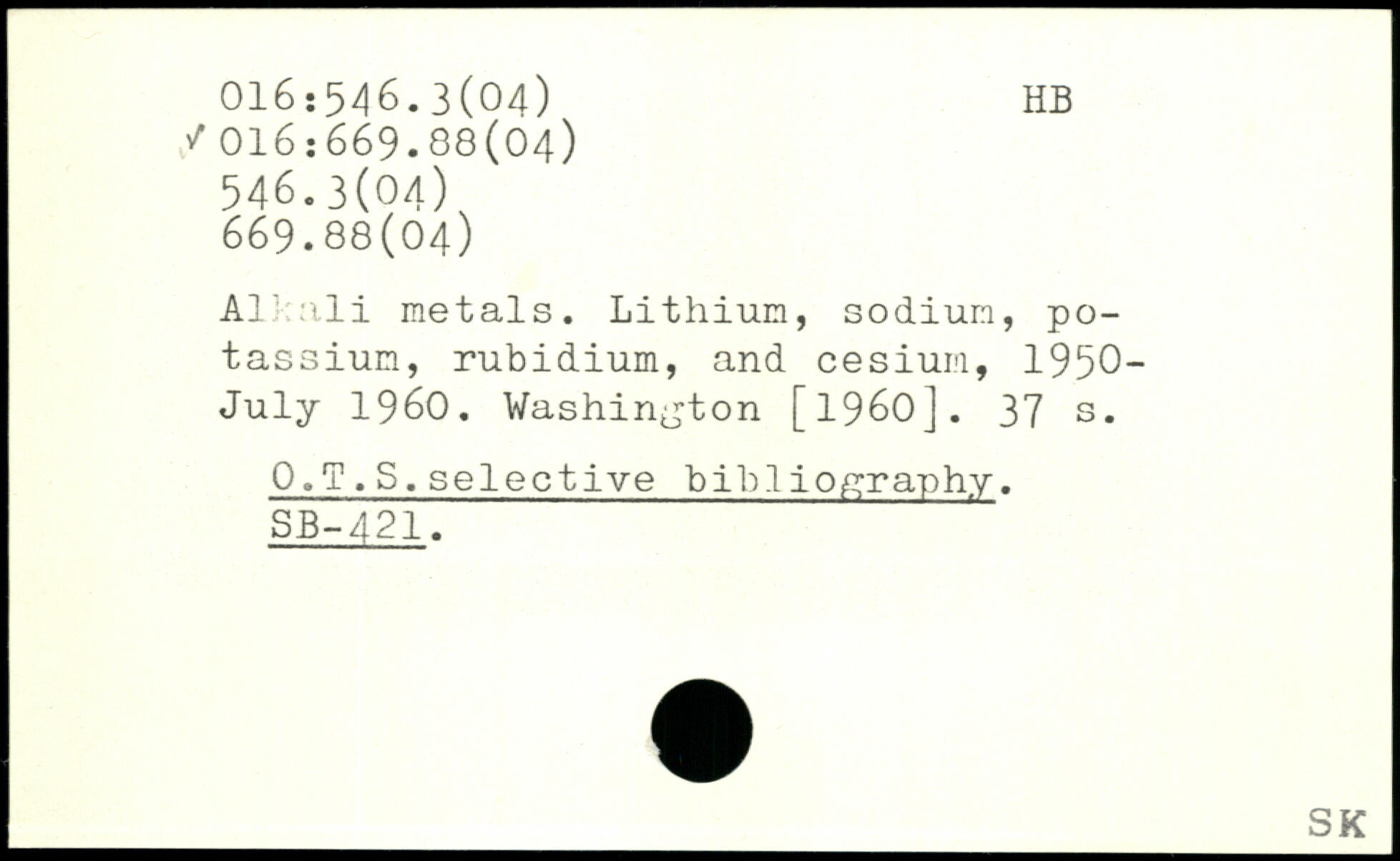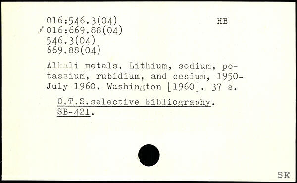Al' ali metals. Lithium, sodium, potassium, rubidium, and césium, 1950-July 1960.