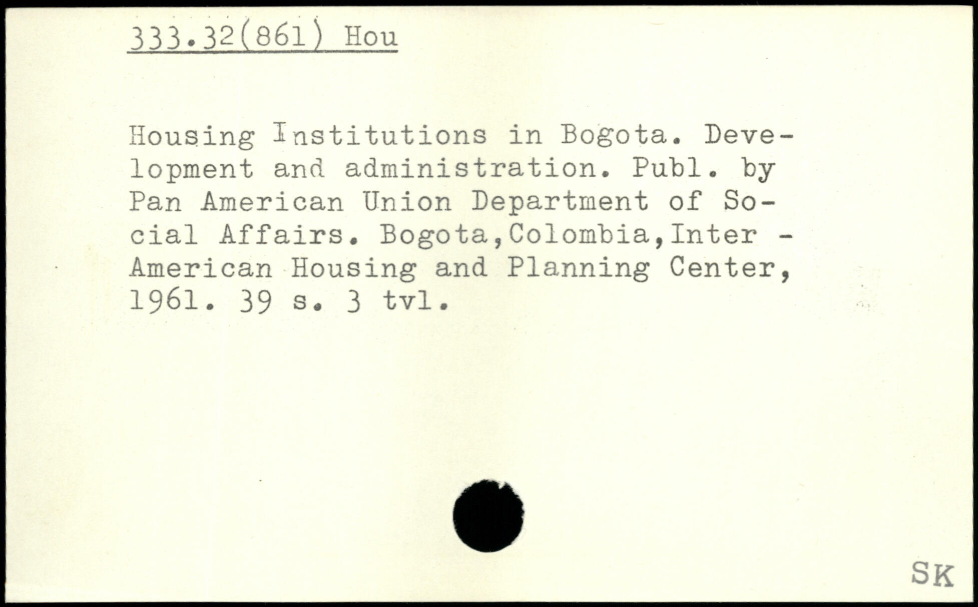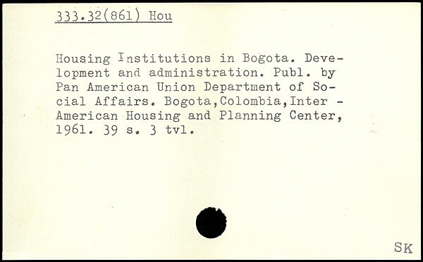 Housing Institutions in Bogota. Development and administration.