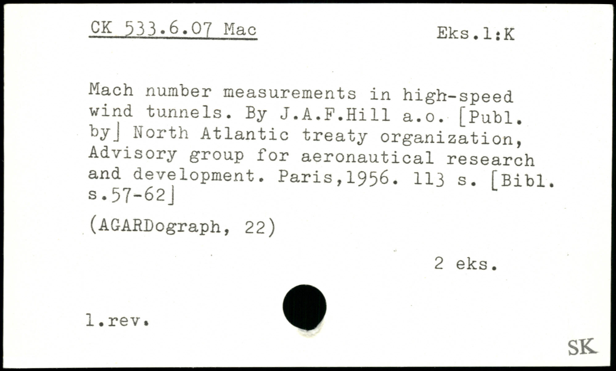 Mach number measurements in high-speed wind tunnels. By J.A.F.Hill a.o.