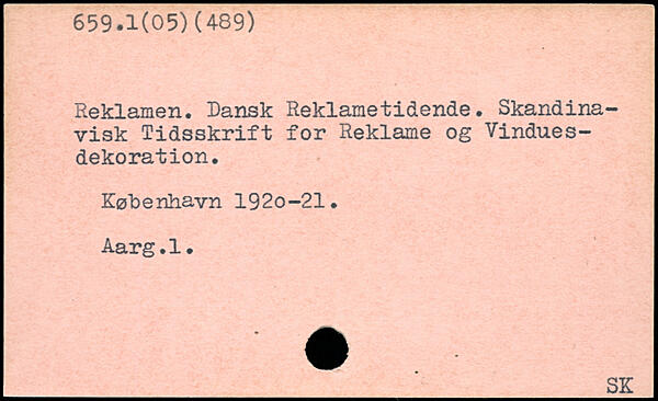 Reklamen. Dansk Reklametidende. Skandinavisk Tidsskrift for Reklame og Vinduesdekoration. København 192o-21. Aarg.1.