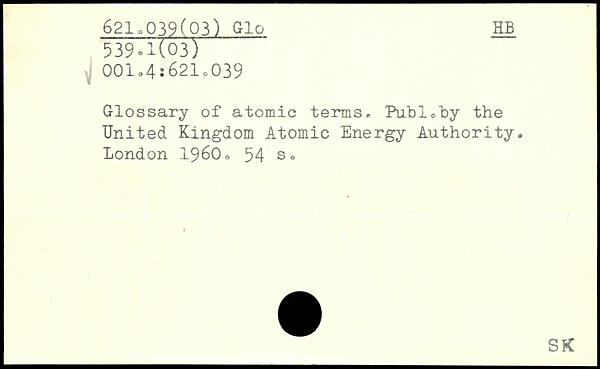 Glossary of atomic terms,, Publohy the United Kingdom Atomic Energy Authority