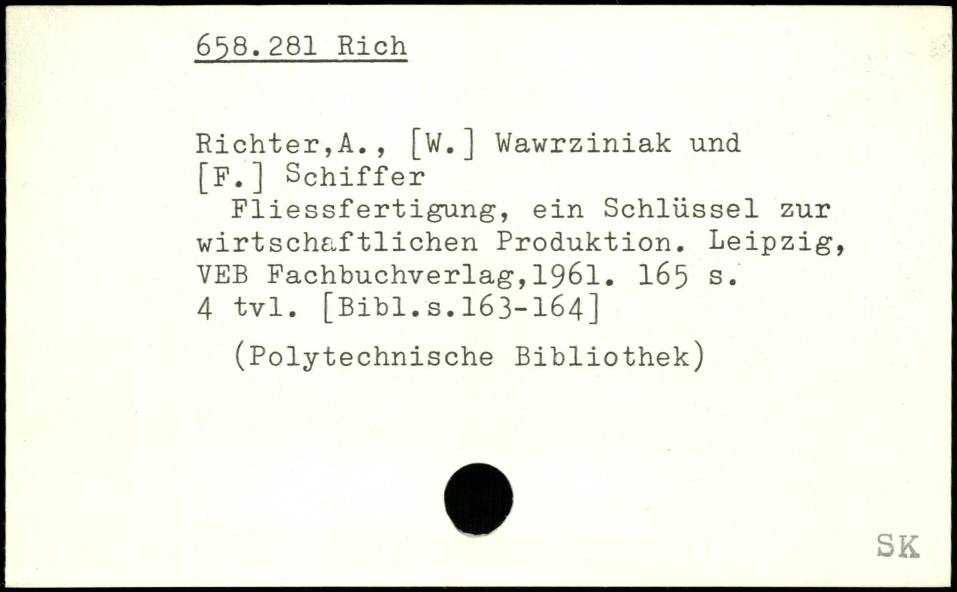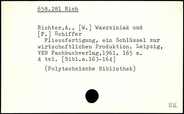 Richter,A., [W.] Wawrziniak und [F.] Schiffer Fliessfertigung, ein Schlüssel zur wirtschaftlichen Produktion.