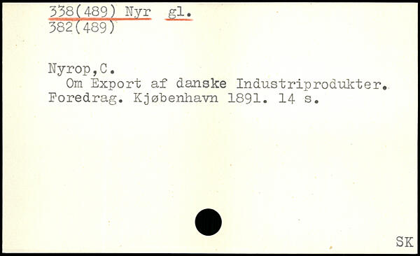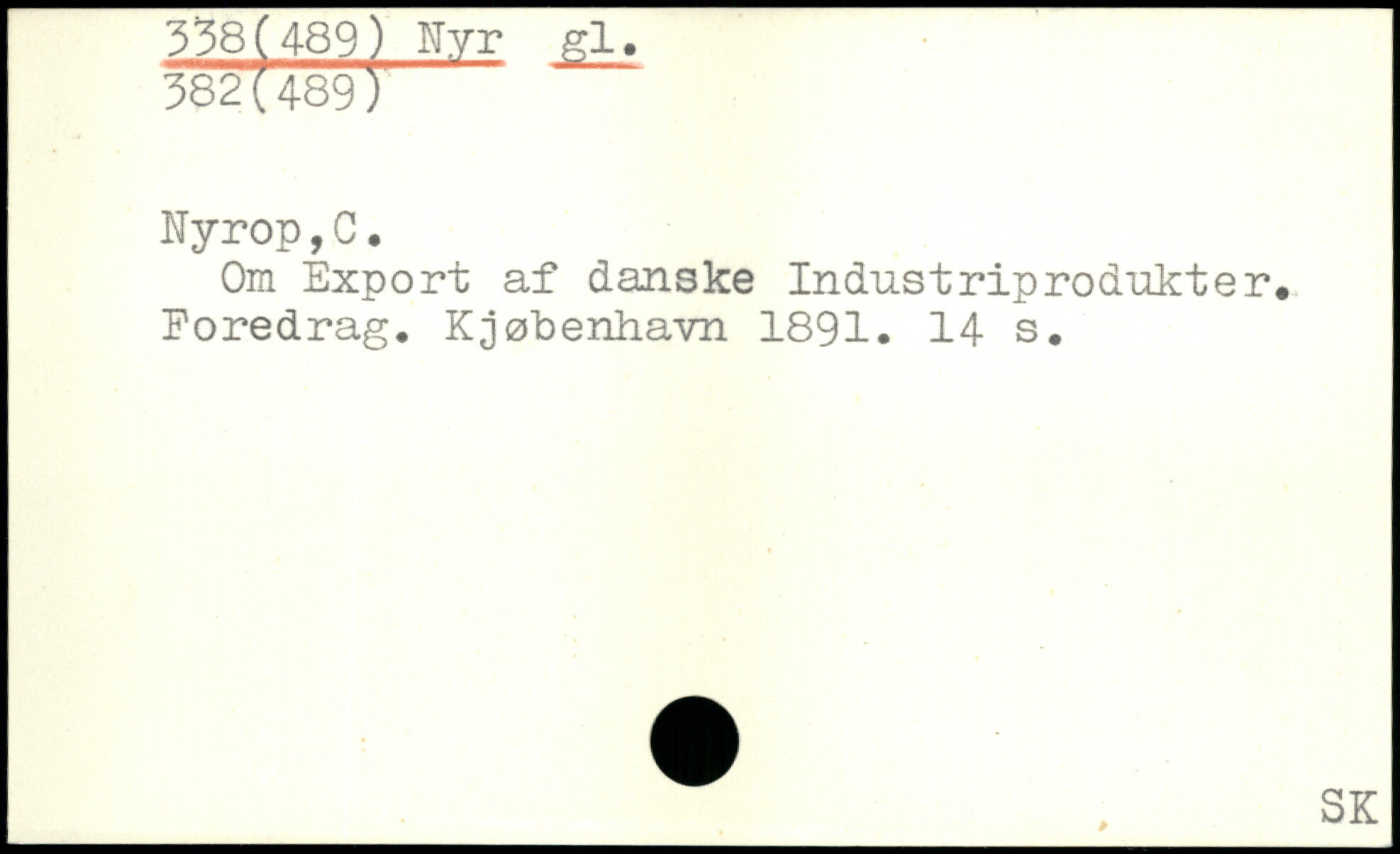 Om Export af danske Industriprodukter, Poredrag, Kjøbenhavn 1891.
