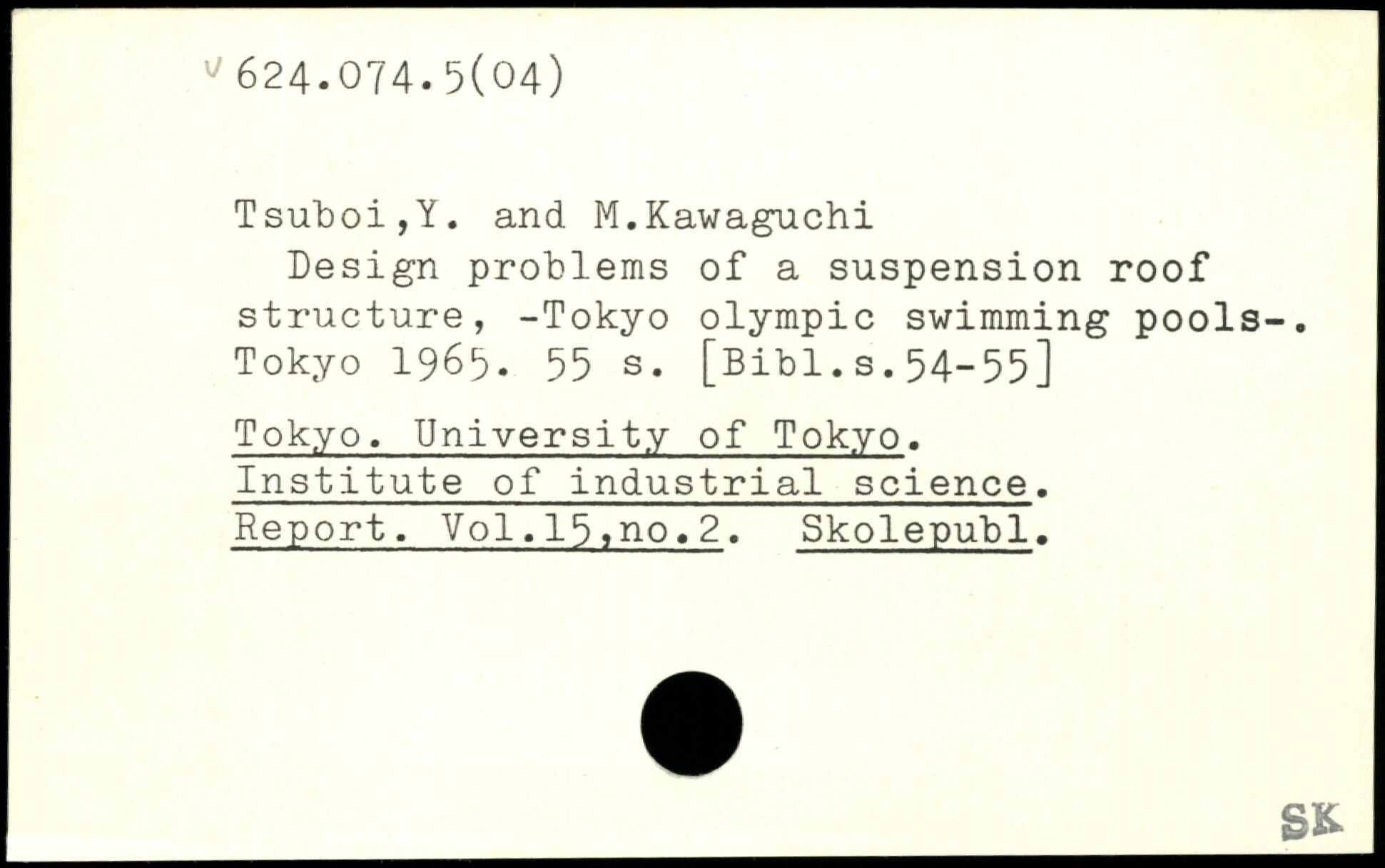 Design problems of a suspension roof structure, -Tokyo Olympic swimming pools-.