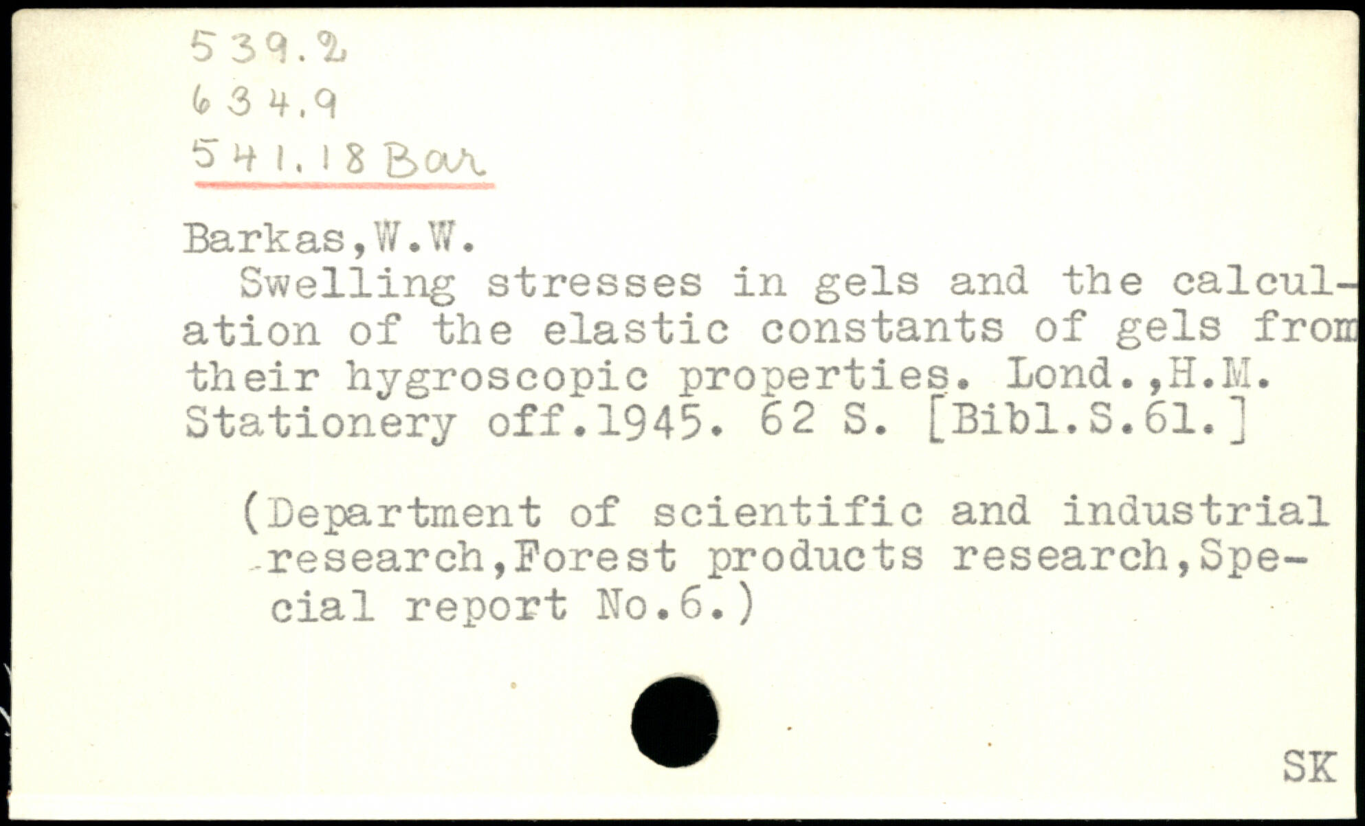 Swelling stresses in gels and the calculation of the elastic constants of gels fron their hygroscopic properties. Lond.,H.M. Stationery off.1945.