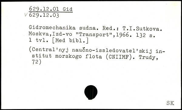 Gidromechanika sudna. Red.: T.I.Sutkova. Moskva,Izd-vo "Transport", 1966.