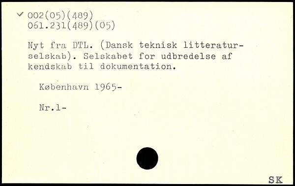 Nyt fra DTL. (Dansk teknisk litteraturselskab). Selskabet for udbredelse af kendskab til dokumentation.