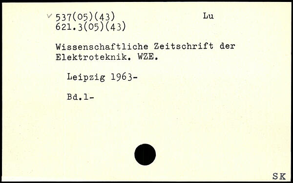 Wissenschaftliche Zeitschrift der | Elektroteknik. WZE.