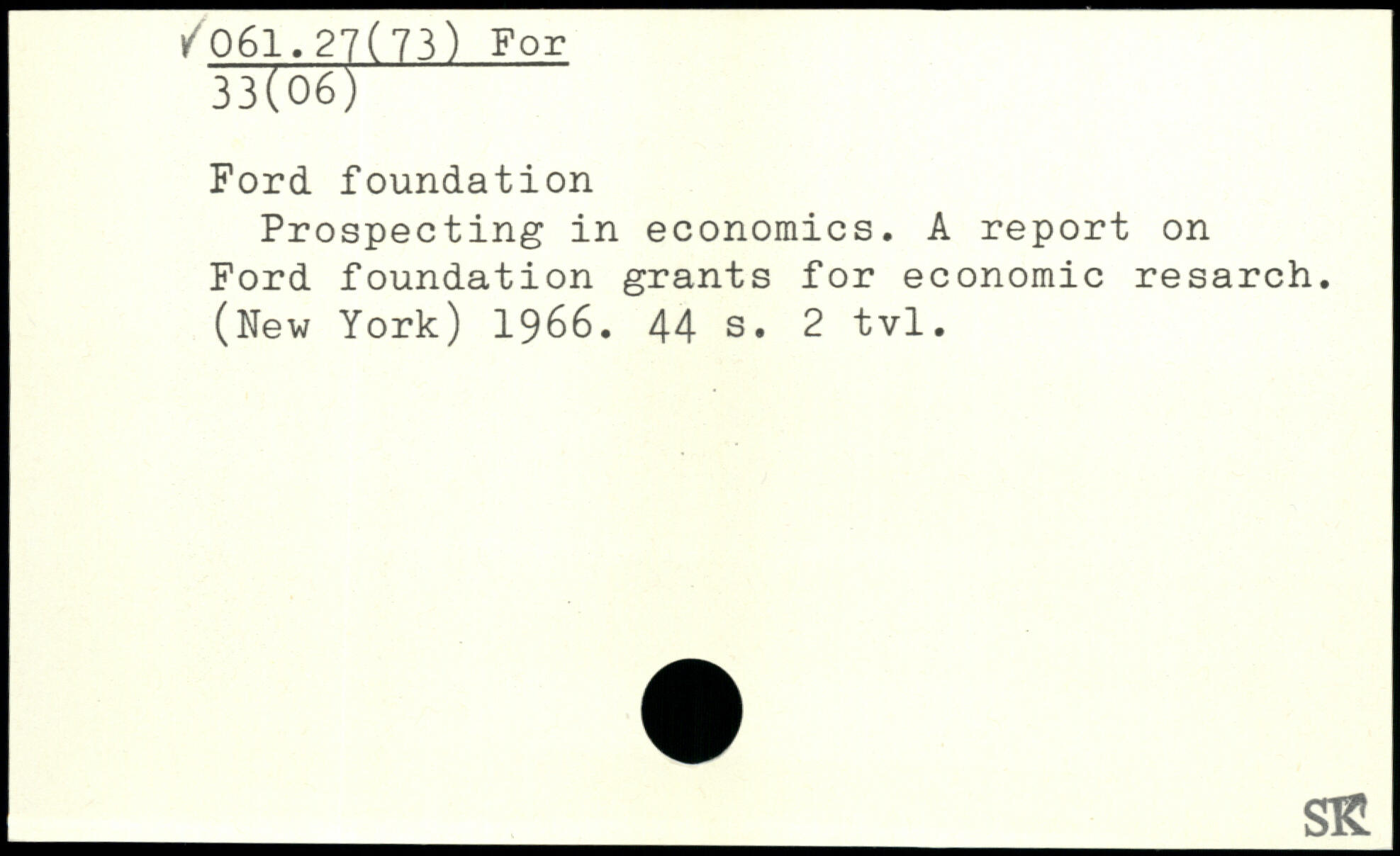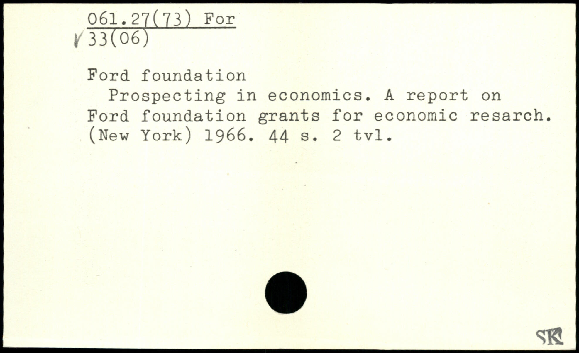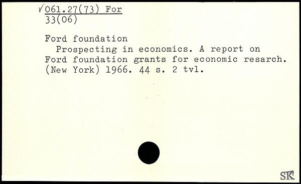 Ford, foundation Prospecting in economics. A report on Ford foundation grants for economic resarch. (New York) 1966.