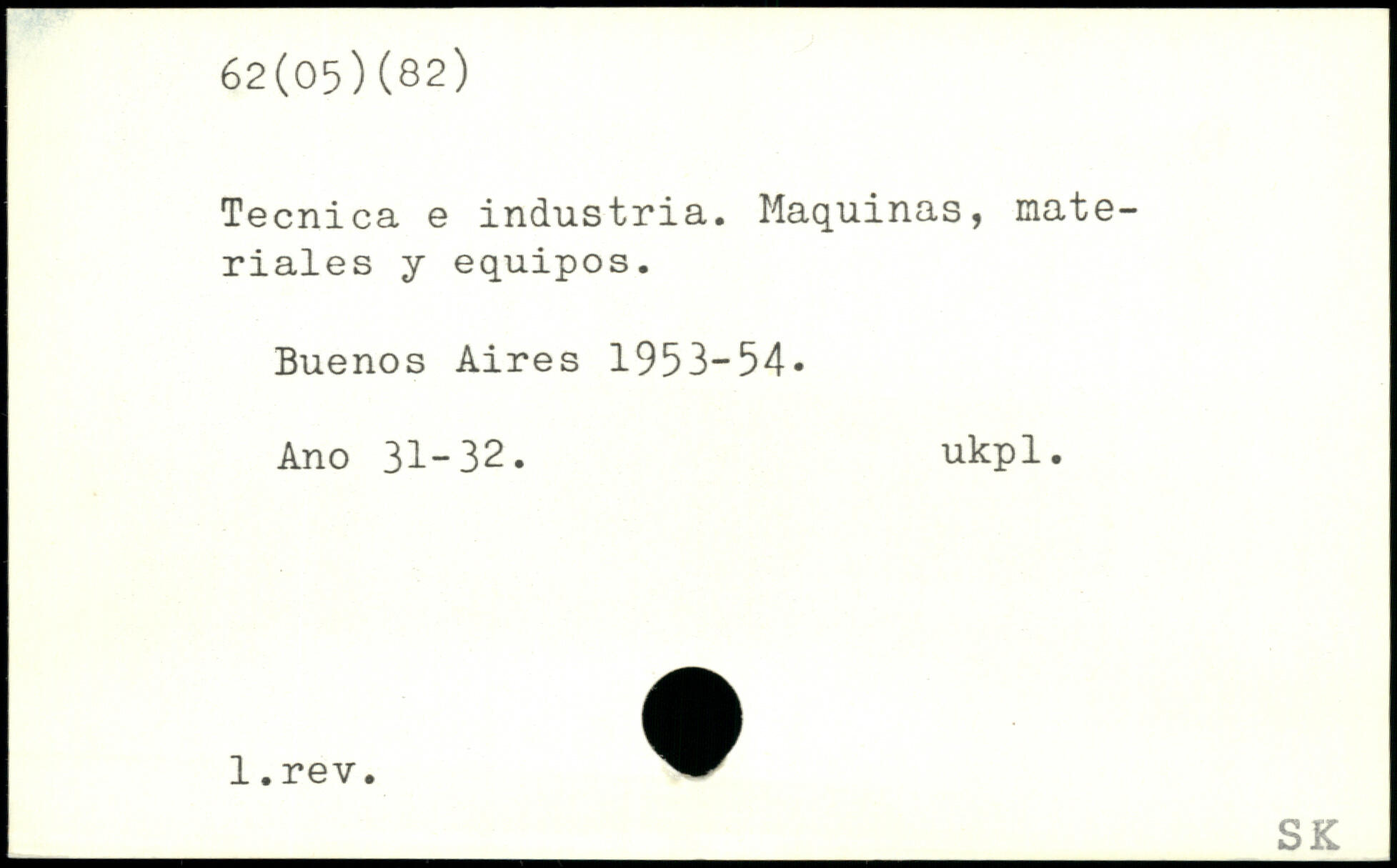 Tecnica e industria. Maquinas, mate-riales y equipos. Buenos Aires 1953-54. Ano 31-32. ukpl.