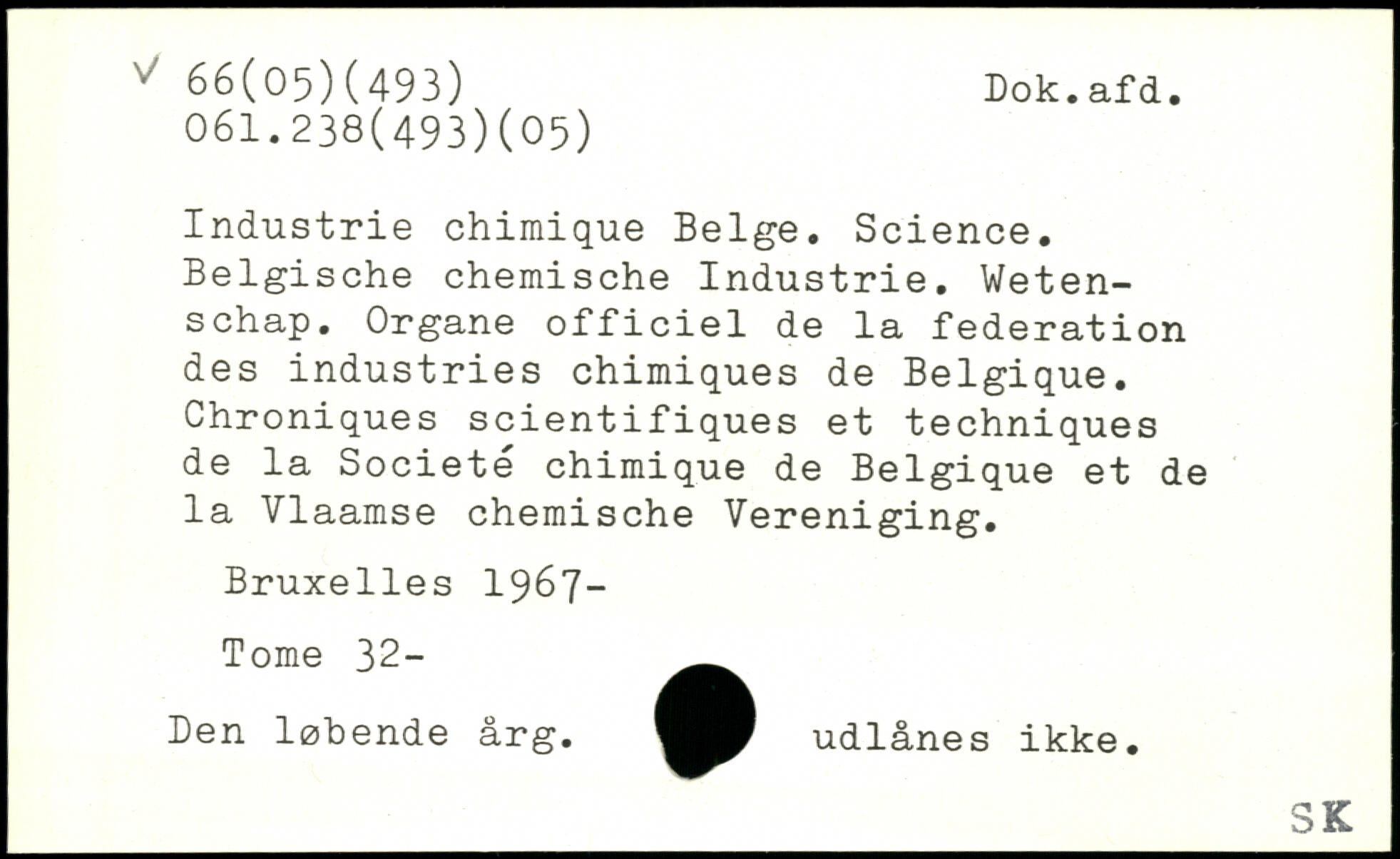 Industrie chimique Belge. Science. Belgische chemische Industrie. Weten-schap. Organe officiel de la federation des industries chimiques de Belgique. Chroniques scientifiques et techniques de la Société chimique de Belgique et de la Vlaamse chemische Vereniging.