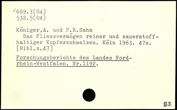 Das Fliessvermögen reiner und sauerstoffhaltiger Kupferschmelzen.