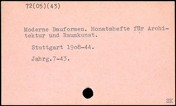 Moderne Bauformen. Monatshefte für Architektur und Raumkunst. Stuttgart 19o8-44. Jahrg.7-43.