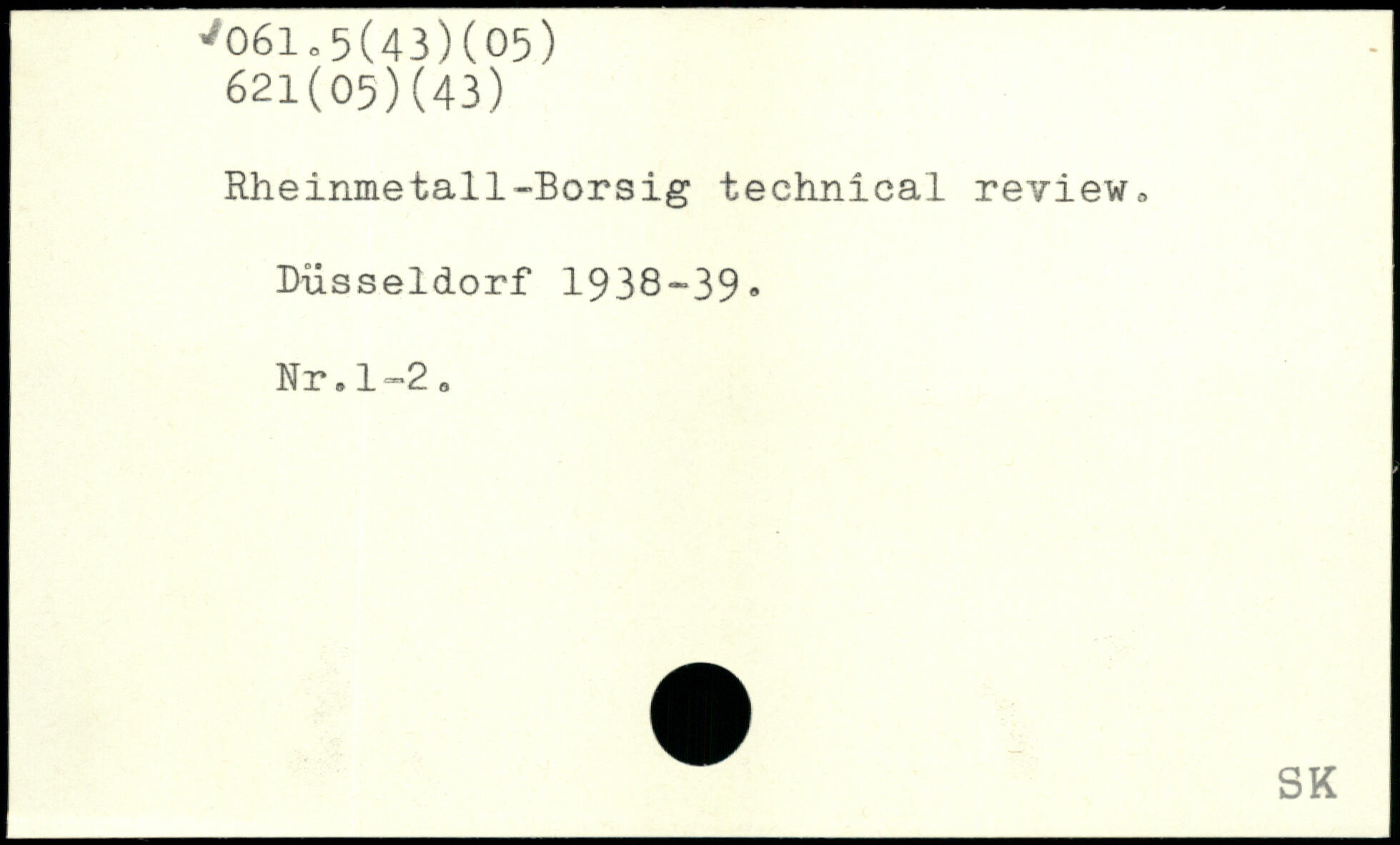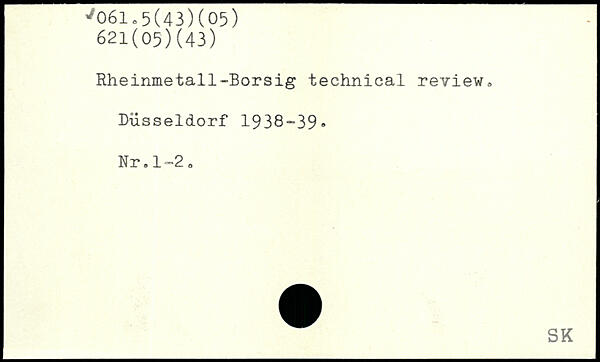 Rheinmetall-Borsig technical review , Düsseldorf 1938-39, Nr.1-2.