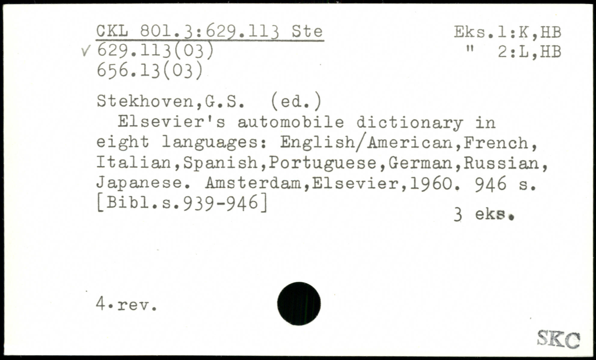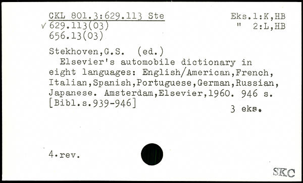 Elsevier's automobile dictionary in eight languages: English/American,French, Italian,Spanish,Portuguese,German,Russian, Japanese.