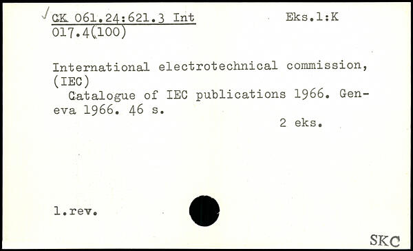 International electrotechnical commission, (IEG) Catalogue of IEC publications 1966.