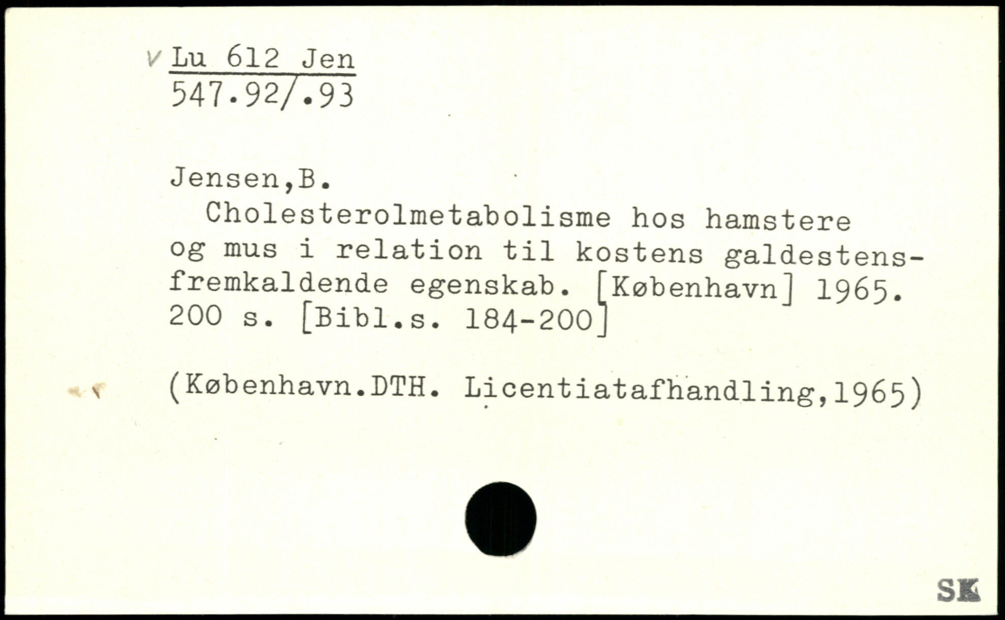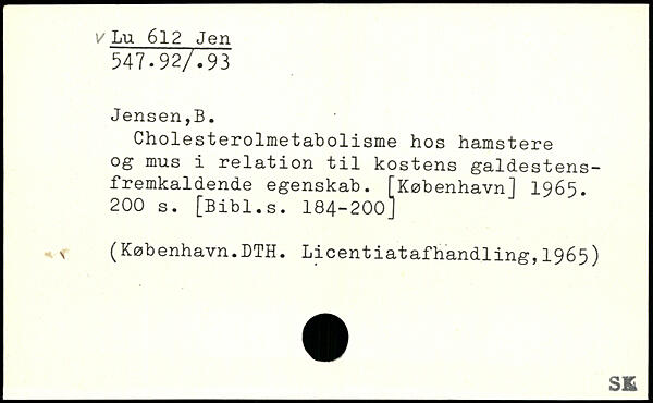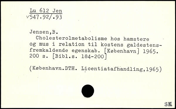 Cholesterolmetabolisme hos hamstere og mus i relation til kostens galdestensfremkaldende egenskab.