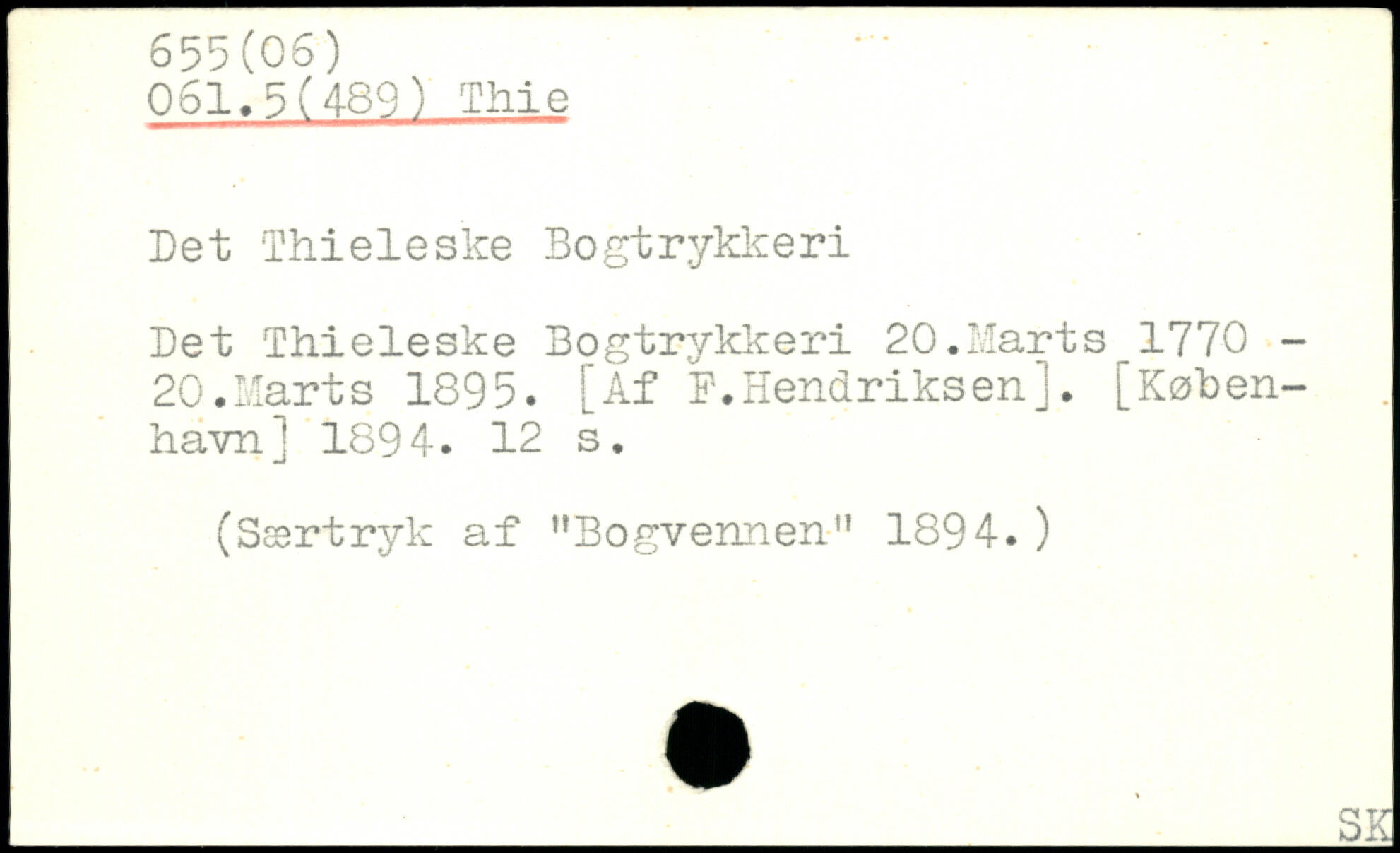 Det Thieleske Bogtrykkeri Let Thieleske Bogtrykkeri 20.Marts 1770 -20.Marts 1895. [Af P.Hendriksenj.