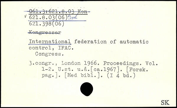 International federation of automatic control, IFAC. Congress. 3.congr.