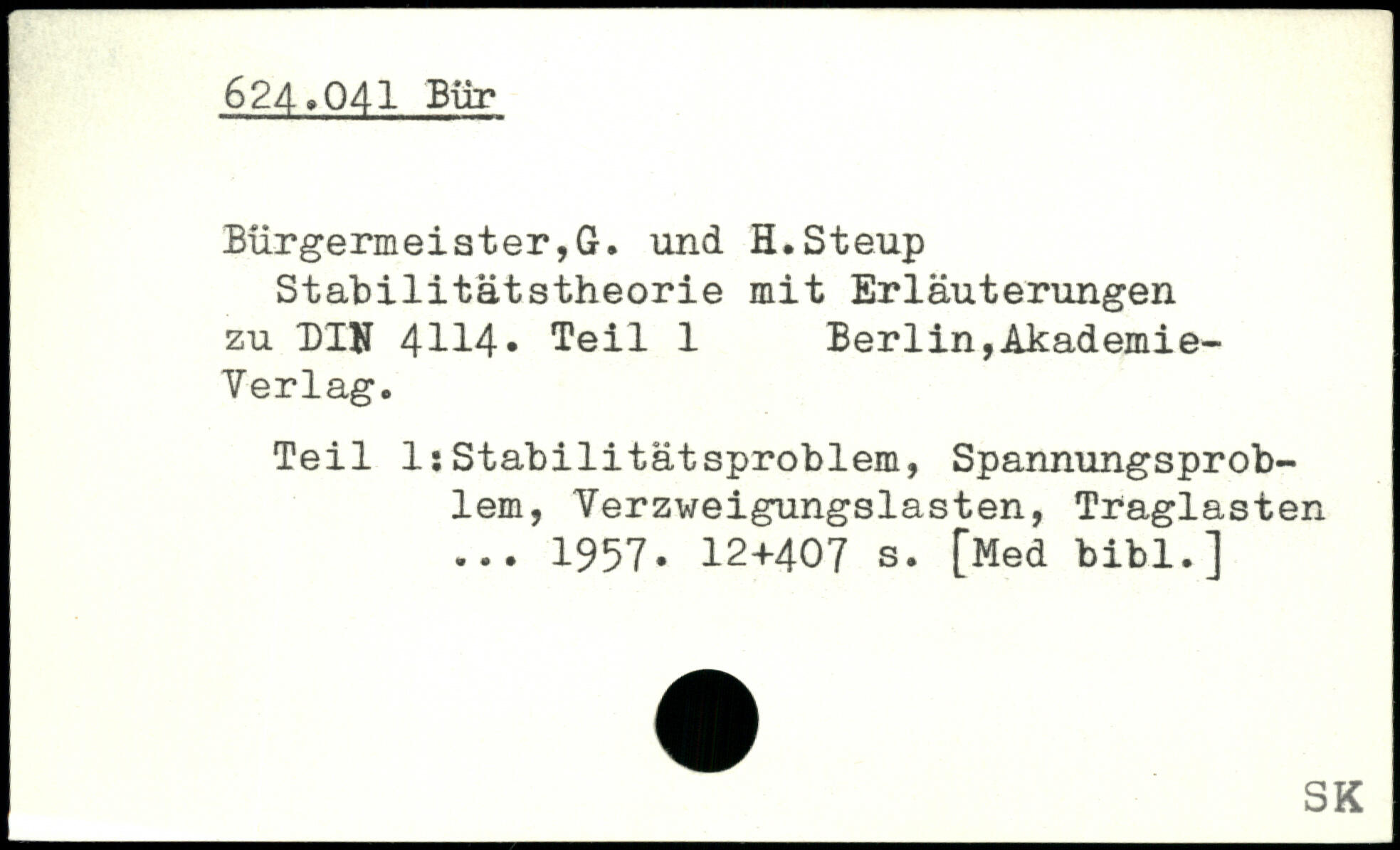 Stabilitätstheorie mit Erläuterungen zu DIN 4114, Teil 1 Berlin,Akademie-Verlag. Teil 1:Stabilitätsproblem, Spannungsproblem, Verzweigungslasten, Traglasten ... 1957.