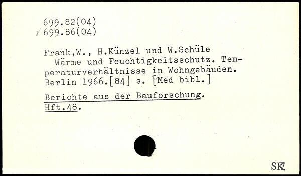 Frank,W. , H.Kunzel und. W. Schul© Warme und Feuchtigkeitsschütz, Tem-peraturverhaltnisse in Wohngebäuden.