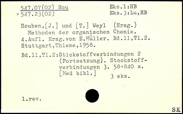 Houben,[J.] und [T.] Weyl (Hrsg.) Methoden der organischen Chemie.