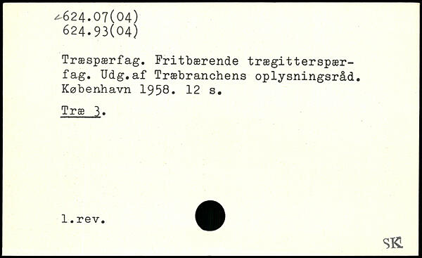 Træspærfag. Fritbærende trægitterspær-fag. Udg.af Træbranchens oplysningsråd.