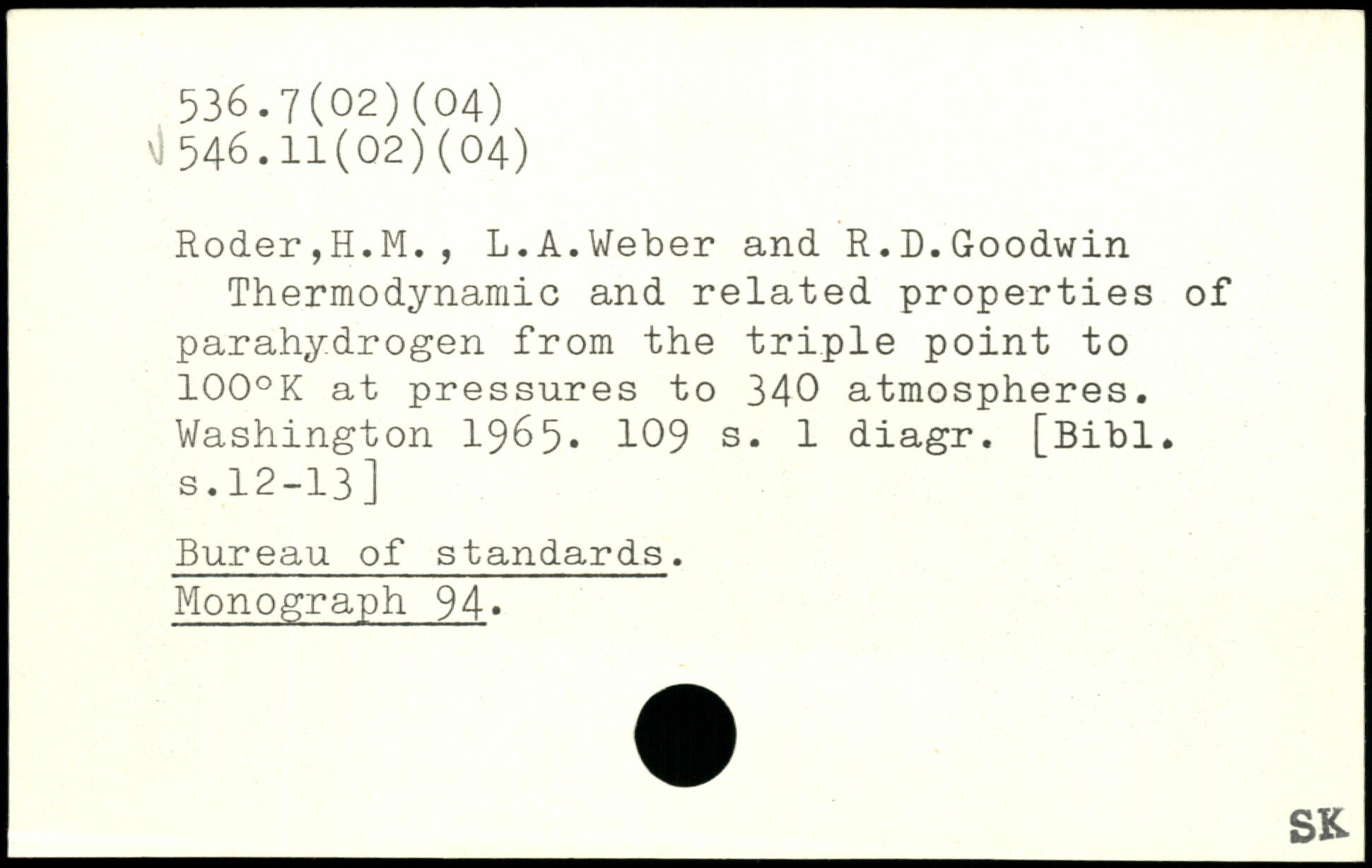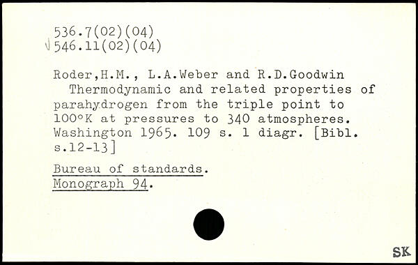 Roder,H.M., L.A.Weber and R.D.Goodwin Thermodynamic and related properties of parahy.drogen from the triple point to 100.K at pressures to 340 atmospheres.