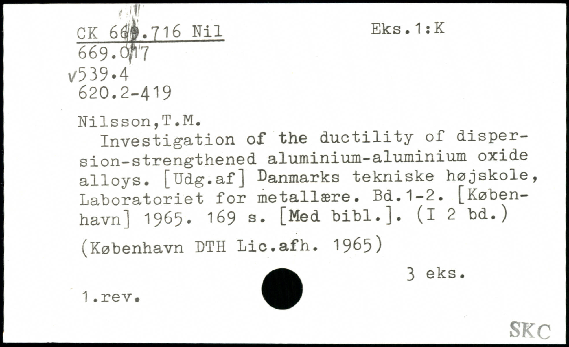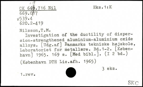 Investigation of the ductility of dispersion-strengthened aluminium-aluminium oxide alloys. [Udg.af] Danmarks tekniske højskole, Laboratoriet for metallære.