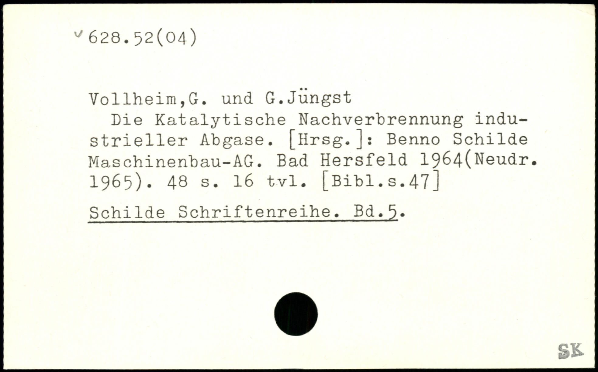 Die Katalytische Nachverbrennung industrieller Abgase. [Hrsg.]: Benno Schilde Maschinenbau-AG. Bad Hersfeld 1964(Neudr. 1965).