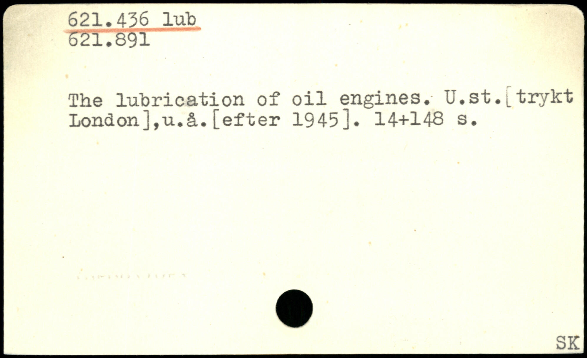 The lubrication of oil engines. U.st.[trykt London],u.&.[efter 1945].