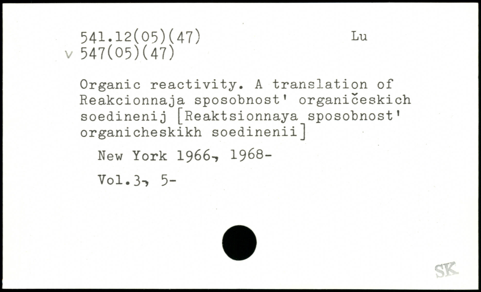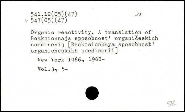 Organic reactivity. A translation of Reakcionnaja sposobnost' organiceskich soedinenij [Reaktsionnaya sposobnost' organicheskikh soedinenii]